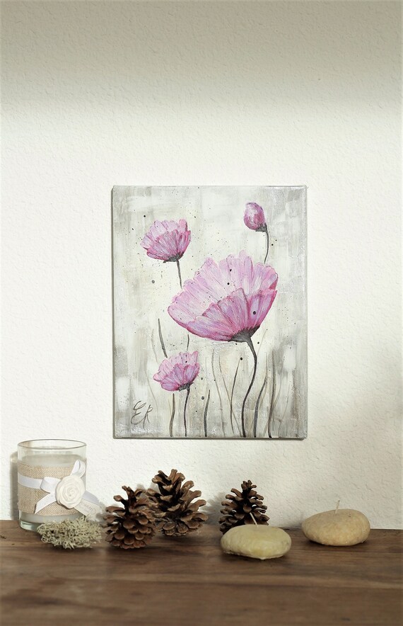 Peinture acrylique sur toile fleurs roses | Etsy